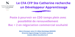 Le CFA CFA EC 72-CFP STE CATHERINE propose une nouvelle formation : Chargé(e) de clientèle en assurance & banque en apprentissage dès Octobre 2022.